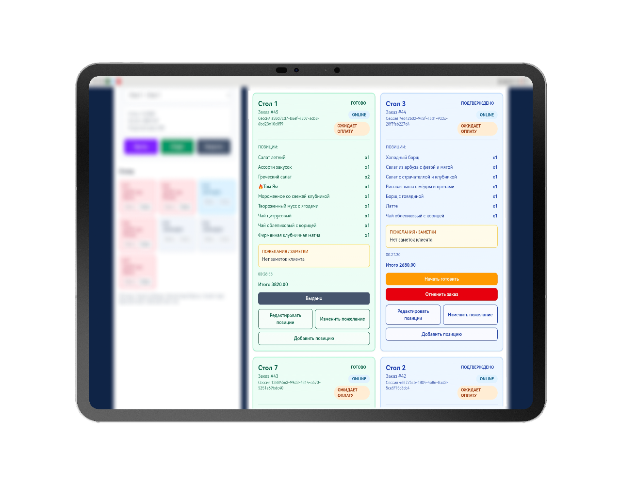 Официанты обрабатывают заказы быстрее, меньше ошибок, все столики под контролем.